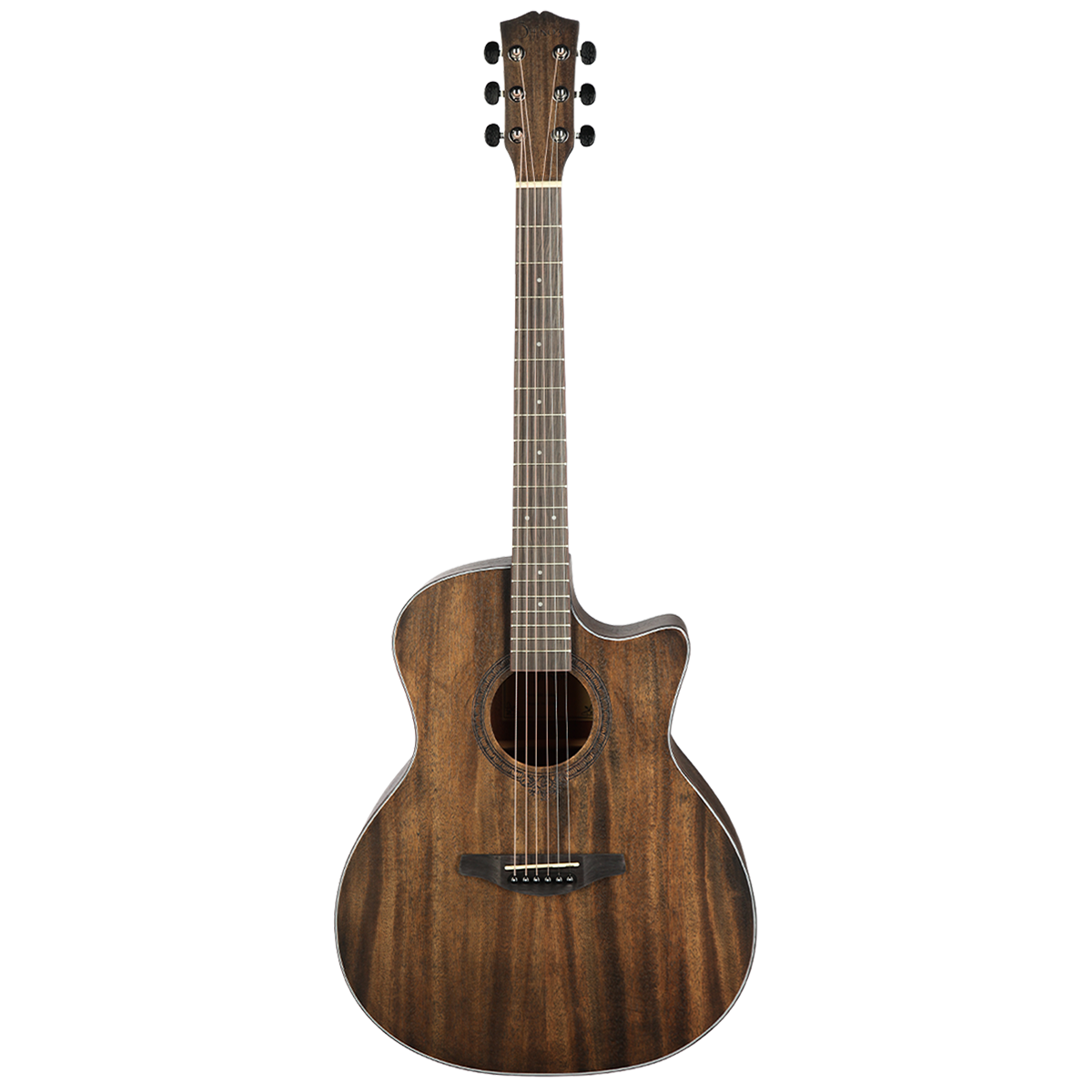 Корпус традиционно выполнен из древесины, что придает звуку индивидуальный окрас. Верхняя и задняя дека, а также обечайка изготовлены из махагони (красного дерева), способного сбалансировать звук, сделать его богатым и насыщенным.